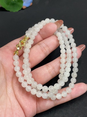 H38472119 Hetian Jade Bead Necklace, approx. 4.8mm, total weight approx. 22.2g, non-Hetian Jade accessory beads