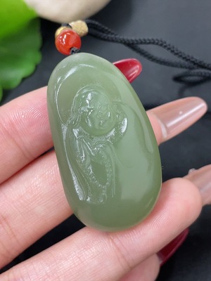 H36288360 Hetian Jade Pendant God of Wealth Total Weight (with rope): 32.8g