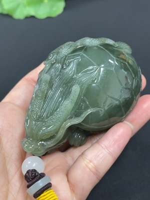 H39565084 Hetian Jade Handheld Carving "Dragon Turtle" with Non-Hetian Jade Beads, Total Weight Approx. 160.3g (including cord)