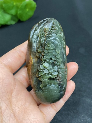 H30467022 Hetian Jade Handheld Piece - Landscape - Total Weight Approx. 129.2g - Undetermined Skin Color Origin - Contains Other Mineral Components