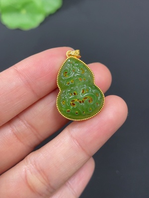 H37466380 Hetian Jade Inlaid Pendant Suspected Gold-Plated Total Weight Approx. 1.5g