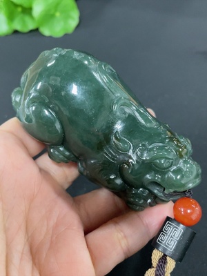 H37411458 Hetian Jade Handheld Ornament - Auspicious Beast