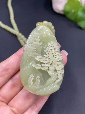 H21338722 Hetian Jade Pendant Landscape Total Weight (Including Chain) Approx. 90.3g