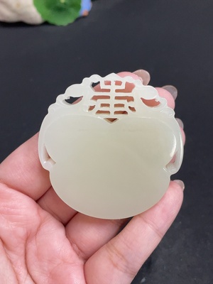 H22442552 Hetian Jade Pendant "Joy on the Brows" Total Weight Approx. 25.57g