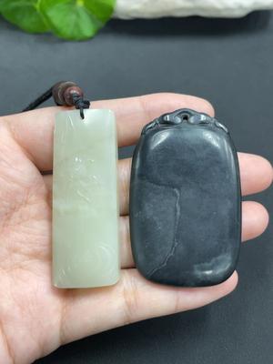 H22496635 Hetian Jade Pendant - Soulmate + Landlord, Total Weight Approx. 9.7g
