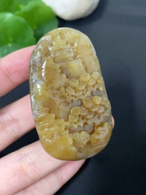 H37365015 Hetian Jade, undetermined skin color origin, containing other mineral components, total weight approximately 17.5g