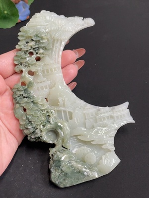 H35118344 Hetian Jade Ornament - Landscape, Total Weight Approximately 174g, Contains Other Mineral Components