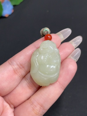 H29431609 Hetian Jade Pendant, Buddha Figure, Containing Other Mineral Components, Total Weight Approx. 134.6g