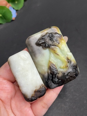 H29358743 Hetian Jade Handheld Carving Auspicious Beast Total Weight Approx. 114.8g