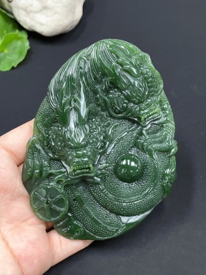 H24828359 Hetian Jade Dragon Plaque Ornament Total Weight Approx. 206.29g