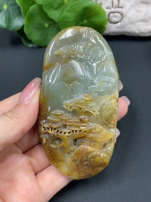 H18994440 Hetian Jade Handheld Ornament Landscape Undetermined Skin Color Formation Total Weight Approx. 135.3g