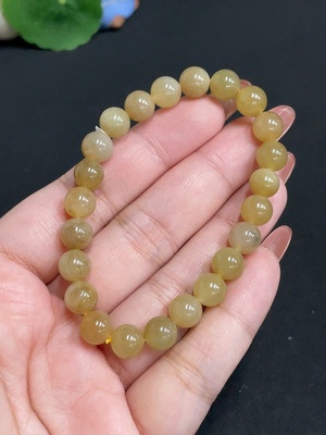 H20239254 Hetian Jade Bracelet, Approx. 7.5mm Beads, Small 99% Gold Beads, Non-Gold for the Rest, Total Weight Approx. 18.5g