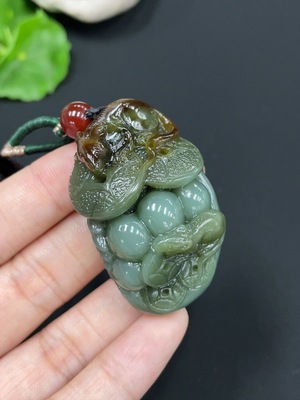 H29324492 Hetian Jade Pendant, Fu Melon, Total Weight (Including String): 20.9g