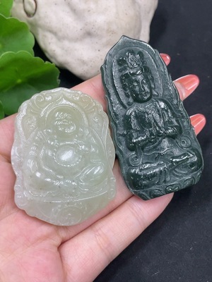 H34062514 Hetian Jade Pendant - Buddha + Guanyin, Total Weight Approx. 71.3g
