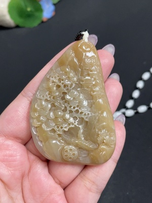 H28204391 Hetian Jade Pendant - Fortune Before Eyes, Total Weight Approx. 42.3g, Undetermined Skin Color Cause