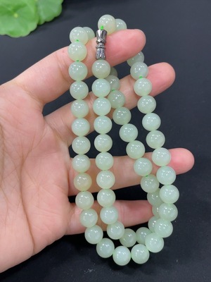 H37450546 Hetian Jade Bead Necklace Approx. 7.6mm Non-Gold Total Weight Approx. 45.3g