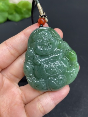 H35170010 Hetian Jade Pendant - Buddha, Total Weight (including rope): 49.3g, Beads not Hetian Jade