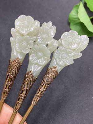 H15688800 Hetian Jade Inlaid Hairpin Non-Gold Inlaid Total Weight Approx. 54.1g