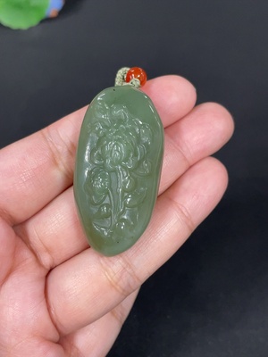 H37408047 Hetian Jade Pendant "Flowers Blooming in Wealth