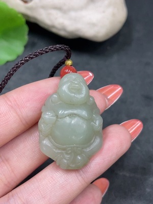H34980284 Hetian Jade Pendant - Buddha Figure (Total Weight Including Rope: 13.5g)