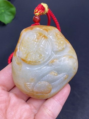 H21413611 Hetian Jade Handheld Ornament - Abundance Every Year - Undetermined Skin Color Origin - Total Weight (Including Rope) Approx. 82g