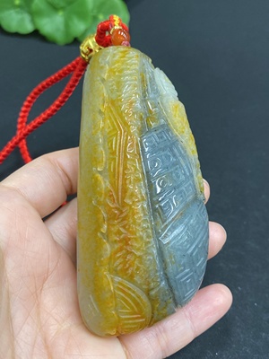 H32813489 Hetian Jade Pendant, Antique-style Piece, Undetermined Skin Color Cause, Total Weight (Including String) Approx. 84.1g