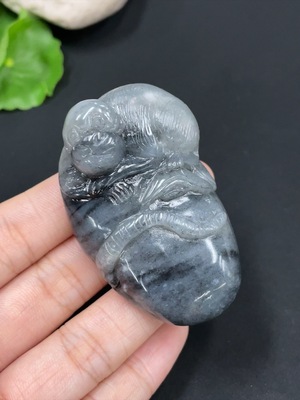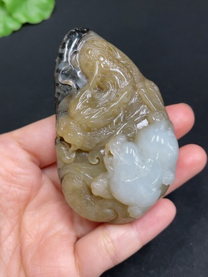 H34072231 Hetian Jade Handheld Carving - Dragon, Total Weight Approx. 99.2g, Undetermined Skin Color Origin, Contains Other Mineral Components