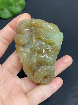 H18995637 Hetian Jade Handheld Carving Dragon Total Weight About 173.9g