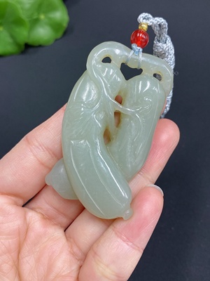 H26943381 Hetian Jade Pendant, Auspicious Melon, Total Weight (including rope): 33.6g