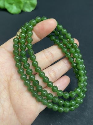 H36279644 Hetian Jade Jasper Bead Necklace, approx. 5.7mm, total weight approx. 34.7g
