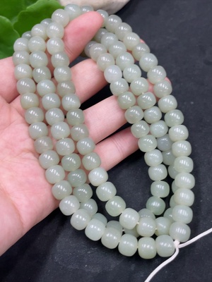 H36296375 Hetian Jade Bead Necklace, Approx. 7.8mm, Total Weight Approx. 89.7g