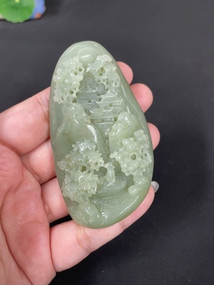 H37388445 Hetian Jade Handheld Piece Landscape Total Weight Approx. 111g