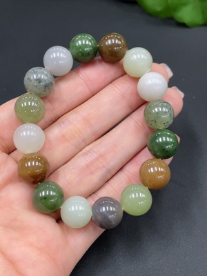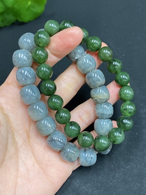 H35129823 Hetian Jade Bracelet, approx. 5.6/5.8mm, total weight about 21.5g, with non-Hetian Jade beads and impurities