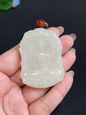 H12349206 Hetian Jade Pendant Guanyin Total Weight 20g (including rope)