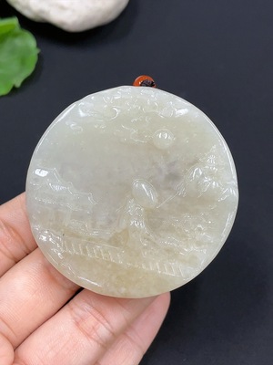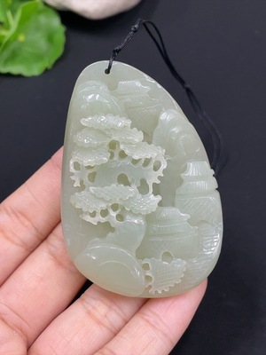 H28270701 Hetian Jade Pendant, Landscape, Undetermined Skin Color Origin, Total Weight (Including Rope) Approx. 57.4g