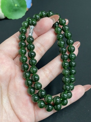 H32770778 Hetian Jade Bead Necklace, Approx. 7.5mm, Total Weight Approx. 42.9g, Non-Gold