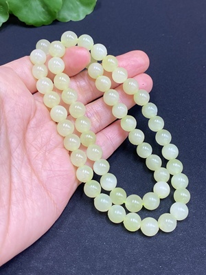 H0128296 Hetian Jade Bead Necklace with Minor Cracks on Individual Beads, Total Weight 38.5g, Size 11.5mm