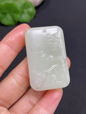 H24829016 Hetian Jade Pendant Landscape Plaque Total Weight Approx. (Including Rope) 63.4g
