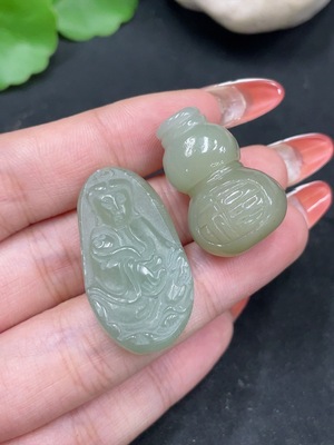 H35112913 Hetian Jade Pendant Gourd with Guanyin Total Weight Approx. 18.6g