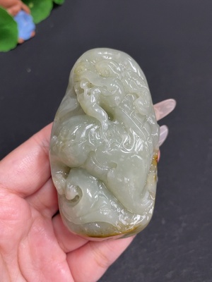 H28204384 Hetian Jade Handheld Carving Auspicious Beast Total Weight Approx. 186.2g Undetermined Skin Color Origin
