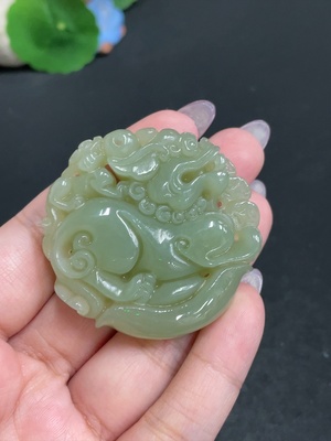 H33925611 Hetian Jade Pendant, Auspicious Beast, Undetermined Skin Color Origin, Contains Other Mineral Components, Total Weight Approximately 63.5g