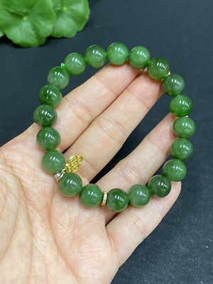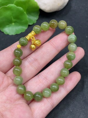 H31585181 Hetian Jade Bracelet, Approx. 9.4mm Beads, Non-Gold-Inlaid, Total Weight Approx. 28.2g