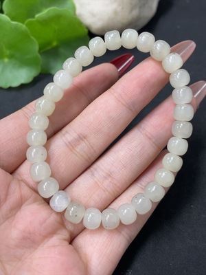 H34053590 Hetian Jade Bracelet, approx. 7.8mm, non-Hetian Jade beads, total weight approx. 18.8g, non-gold