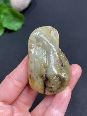 H25867486 Hetian Jade Hand Plaque Auspicious Beast