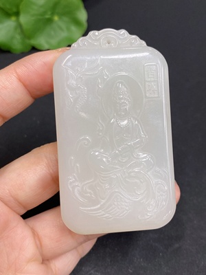 H23650652 Hetian Jade Pendant Guanyin Total Weight About 25.3g