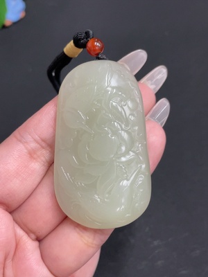H17948046 Hetian Jade Pendant Landscape Plaque Lotus Total Weight Approx. (including rope) 73.6g