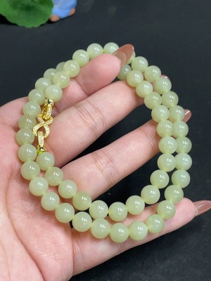 H35118967 Hetian Jade Bead Chain, Approx. 7.8 mm, Total Weight Approx. 44.1g, Non-Gold