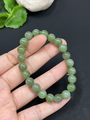 H26039381 Hetian Jade Bracelet Approximately 9.6mm, Total Weight 33.6g, Beads May Not Be Natural