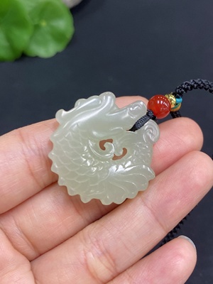 H31640707 Hetian Jade Pendant - Dragon Fish (Total Weight Including Rope: 10.8g)