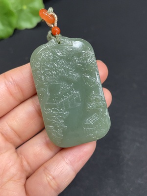 H36206613 Hetian Jade Pendant Landscape Plaque Total Weight (including rope) approx. 40g